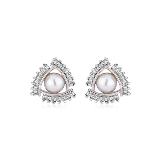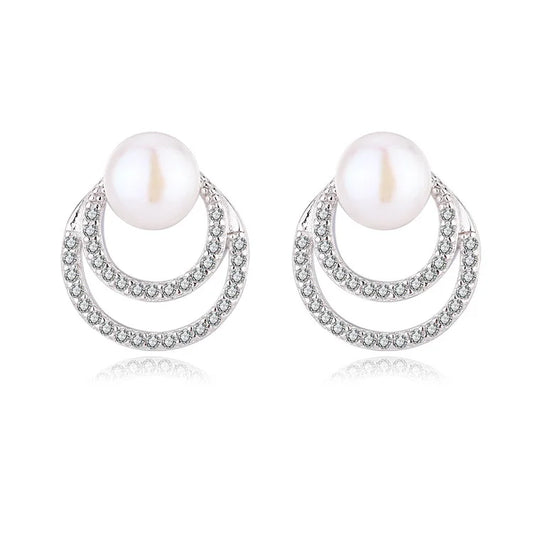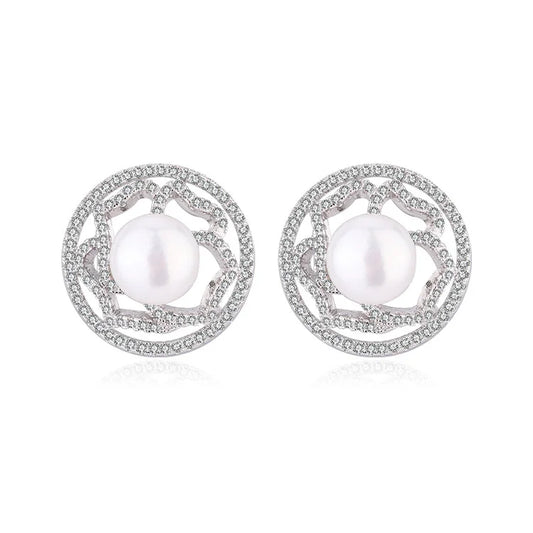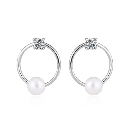 Custom fashion modern wedding jewelry zircon sterling silver pearl hoop round stud earrings