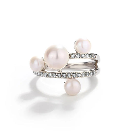 Custom original ladies sterling silver multi cultured pure white real freshwater pearl ring
