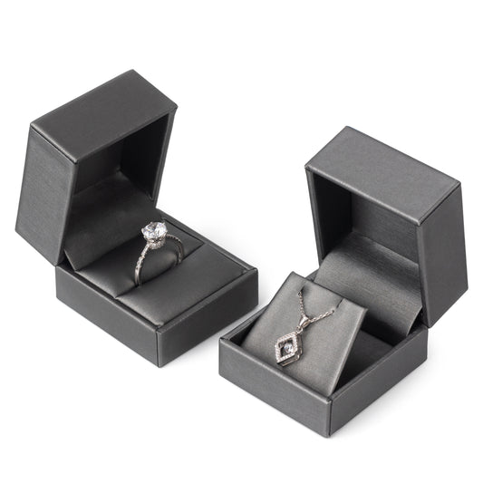 Cajas para anillos recubiertas de PU gris, precio por 24 piezas