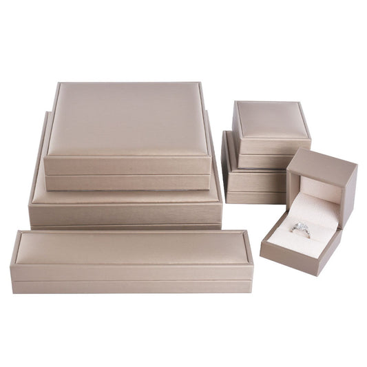 Cajas de joyería grandes cubiertas de PU color champán, precio por 3 piezas