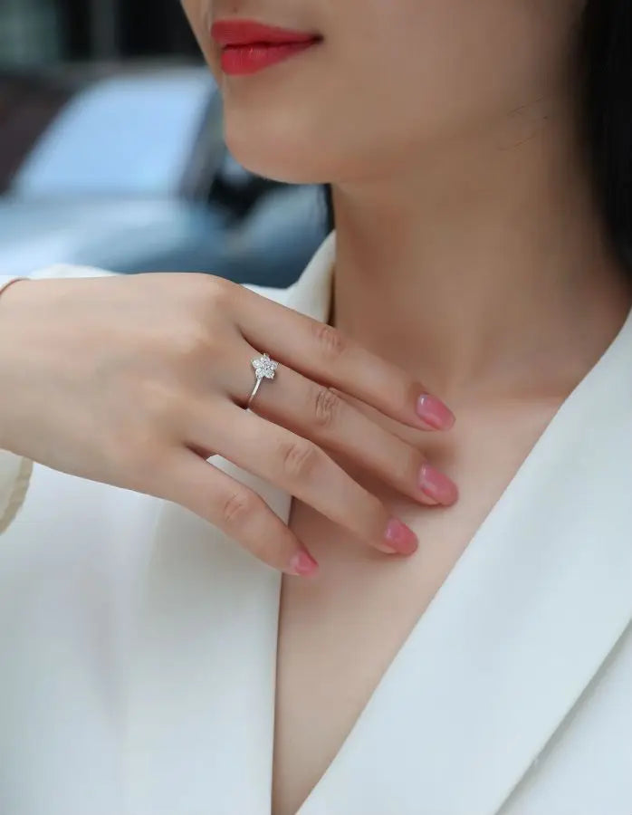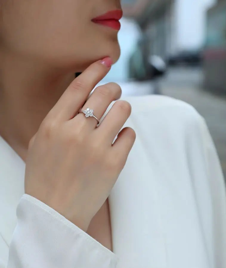 0.53Ct Moissanite Ring, 18K White Gold Plated, Women's S925 Silver Engagement Wedding Jewelry, Five Leaves Design