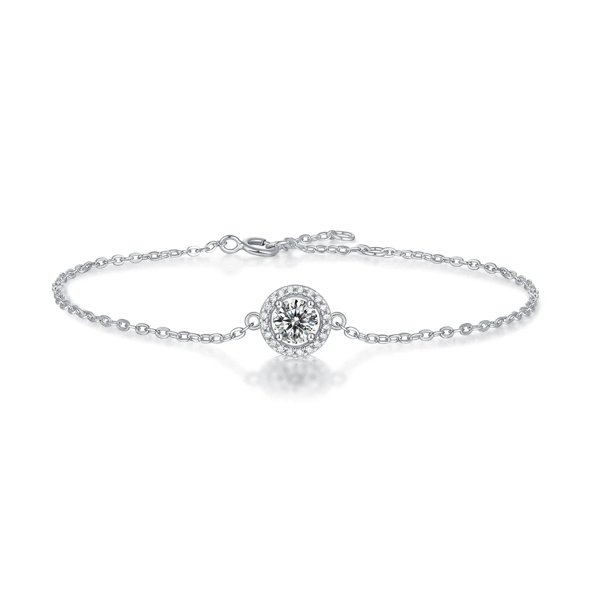 925 Sterling Silver Chain Drawstring Bracelet with 1 Carat Moissanite for Women