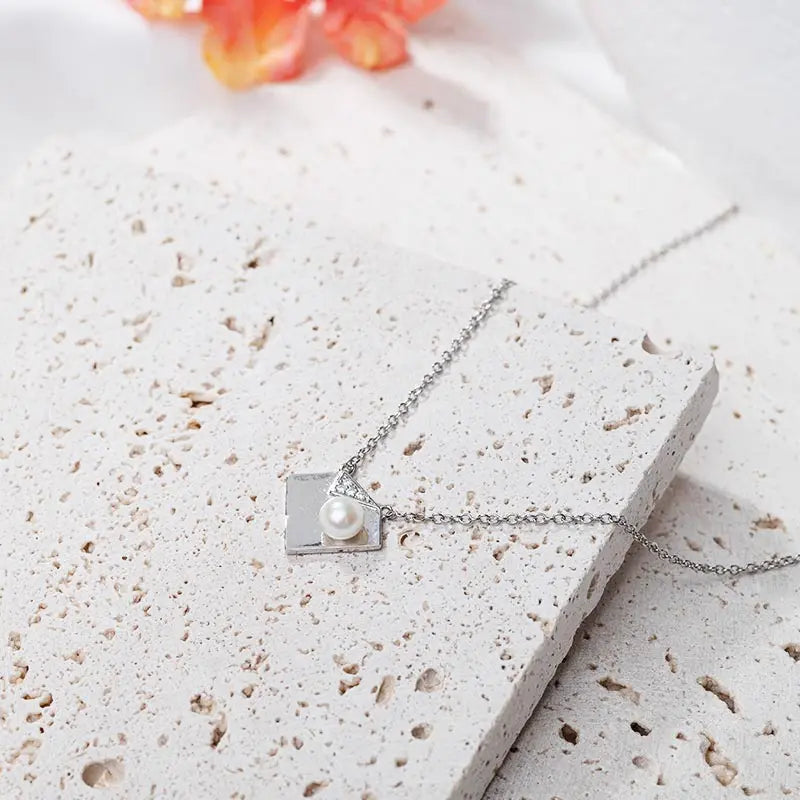 925 sterling silver women teardrop pearl charm drop pendant necklace with pearl pendant
