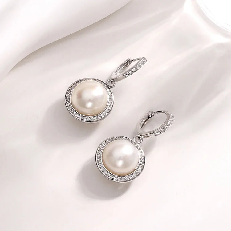 Custom logo modern 925 silver cultured real pearl circle round women stud earrings