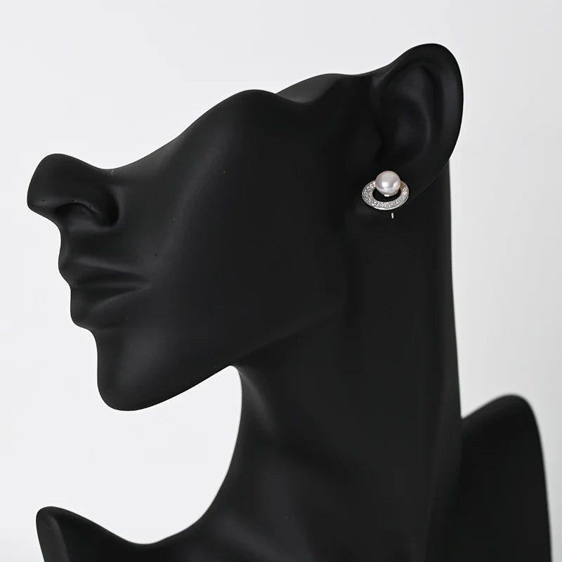 rhodium sterling silver 925 cubic zirconia jewellery freshwater pearl stud earrings 18K gold for women