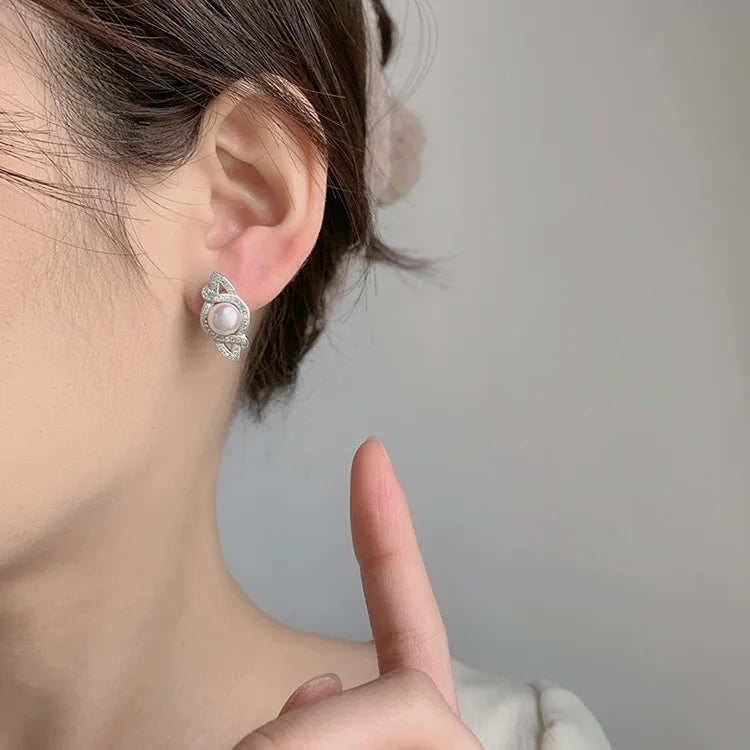 Wholesale personalized fashion jewelry charms zirconia ladies s925 925 silver pearl earrings