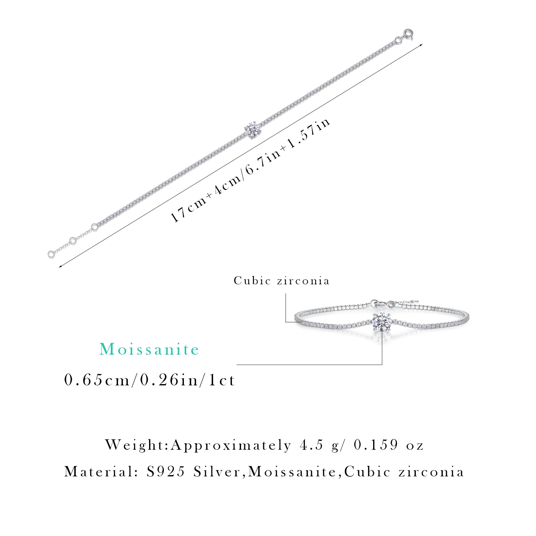 925 Sterling Silver 14K Gold Plated Iced Out Tennis Bracelet Moissanite Diamond Bracelet