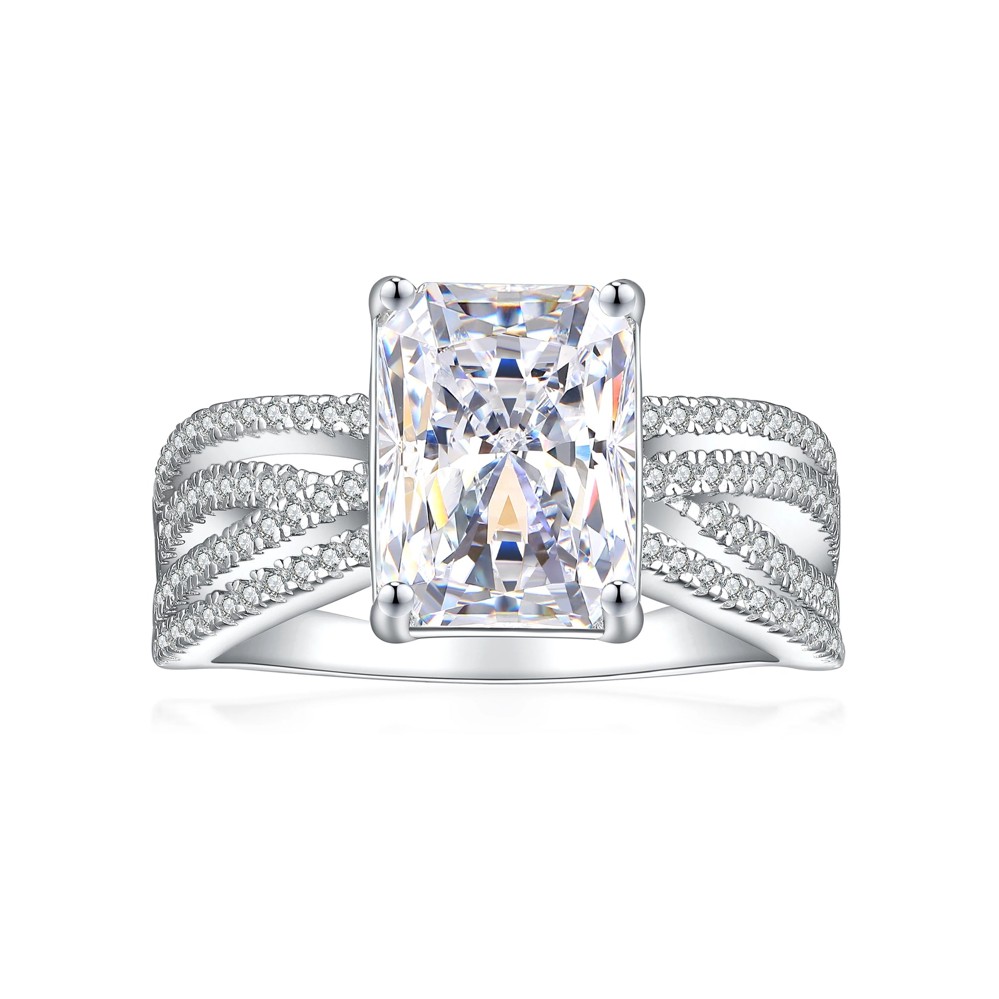 Trendy Twist Emerald Square Engagement Ring Women White Gold Plated Zirconia Minimalist Engagement Rings Silver