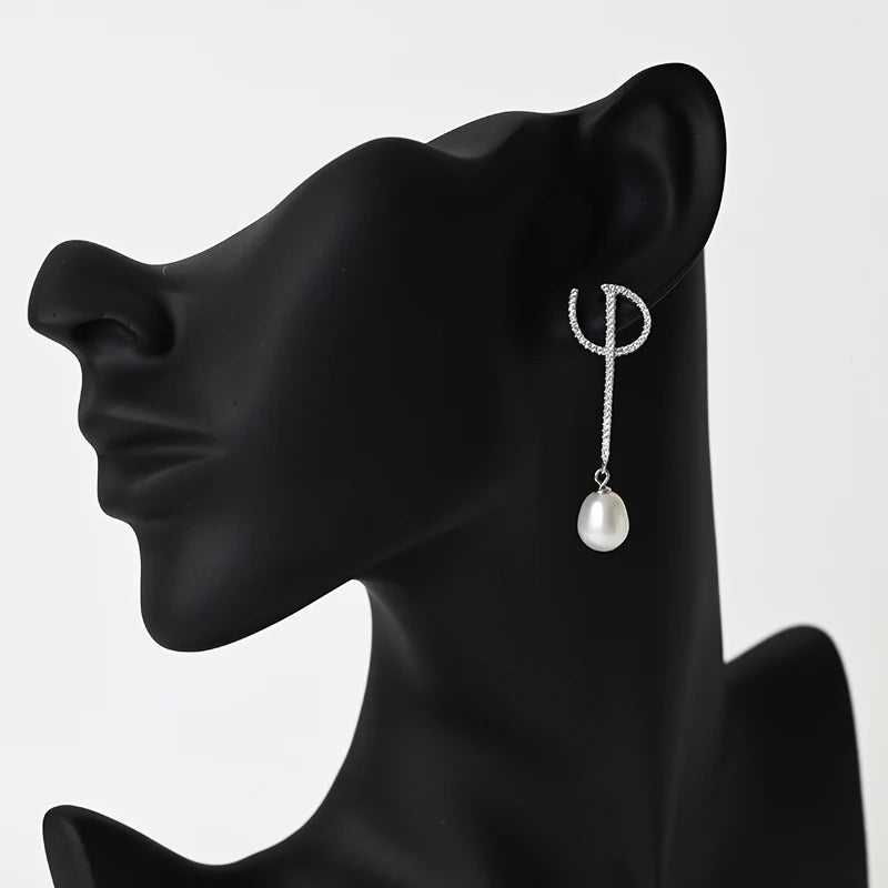 wholesale custom freshwater pearl fancy drop earrings 18k rose gold rhodium plated jewelry for women
