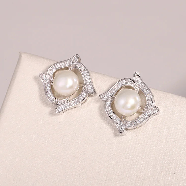 Zircon stone freshwater pearl women earrings 925 sterling silver stud with natural stones