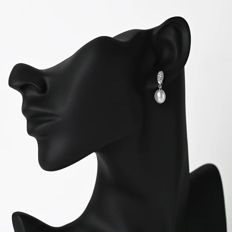 Statement White Cubic Zircon S925 sterling silver chic freshwater pearl pendant drop stud earrings Gifts earrings for Women